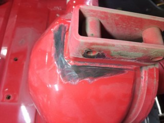 今回は右部分を切開してできるだけ平にして再度溶接して修理したいと思います。