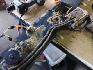 シャーピンが折れたのですが、駆動チェーンを見ると、ゴミがびっしり。