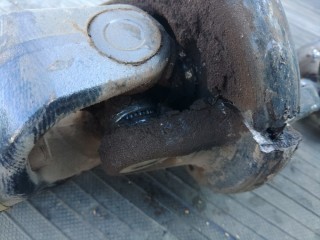 動力を伝える部分がめちゃくちゃに破損している様子です。